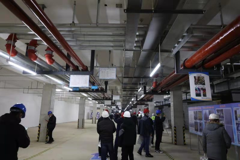 淮北市科創(chuàng)中心位于梧桐路以西、人民路以北,總建筑面積約35萬㎡,建成后將成為淮北市新地標建筑。本次機電安裝專項觀摩會內容包含1000㎡制冷機房展示區(qū)、管線成排BIM展示區(qū)、實物樣板及精益建造展示區(qū)、庫房標準化與新機具新工藝展示區(qū)。集團工程部在項目管理上始終秉承“安全第一”的理念,建立健全安全生產(chǎn)管理制度,認真落實隱患排查和專項整治工作,質量上確保安徽省“黃山杯”為目標,集團工程部副部長張玉坤任項目負責人,成立專班,高標準落實了機電工程樣板引路,各類工藝樣板、工序樣板、實體樣板先行,完善檢查驗收制度,健全管理體系,嚴格過程控制,管好質量源頭,做到全方位質量管控。技術上響應“淮北市關于進一步推進裝配化建筑發(fā)展若干措施”文件精神,擯棄傳統(tǒng)機房施工工藝,采用裝配化、模塊化施工技術,通過運用REVIT、3D-MAX軟件進行機房三維建模深化設計、方案比選、編碼分段,再由工廠化預制、整體打包運輸、現(xiàn)場拼裝、整體吊裝,在48小時內完成了機房主管線安裝工作,極大減少現(xiàn)場焊接作業(yè)、高處作業(yè)、噴涂工作量,有效降低質量安全風險。