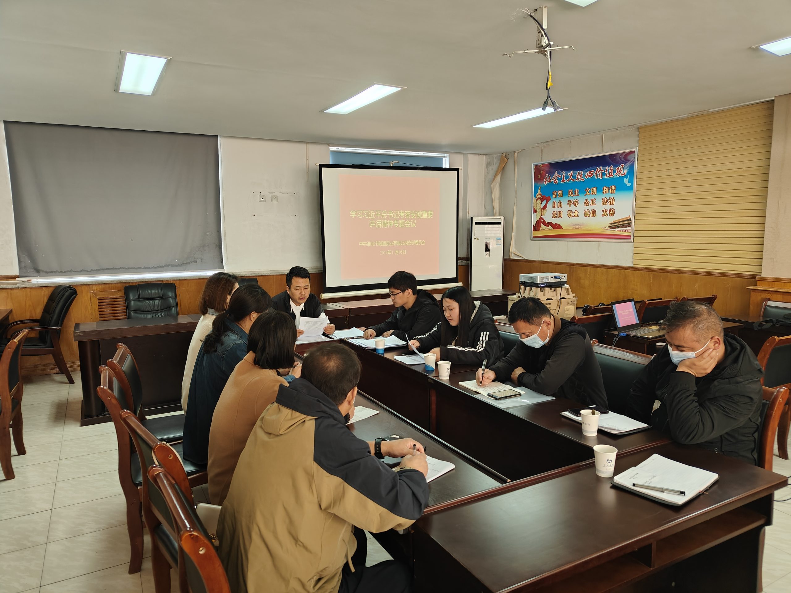11月5日,融通黨支部召開學習習近平總書記考察安徽重要講話精神專題會議,傳達學習了習近平總書記考察安徽重要講話精神以及省委、市委有關會議精神,安排部署學習宣傳貫徹工作。支部書記武肖東主持會議,全體黨員及入黨積極分子參加了會議。