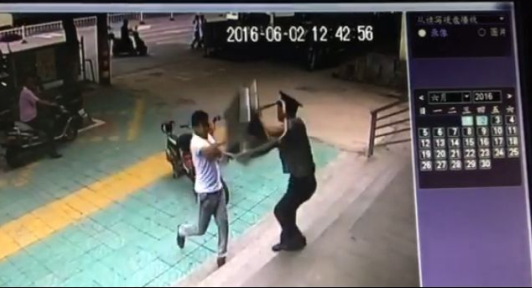 當(dāng)該男子逃跑至司法局樓下時(shí),又對(duì)建行淮東支行進(jìn)行打砸,我公司派駐隊(duì)員劉相迎立刻出門制止,此時(shí)楊玉柱也以趕到,兩人合力將該男子制服,并與隨即趕到的派出所民警一同將其押送至東區(qū)派出所。