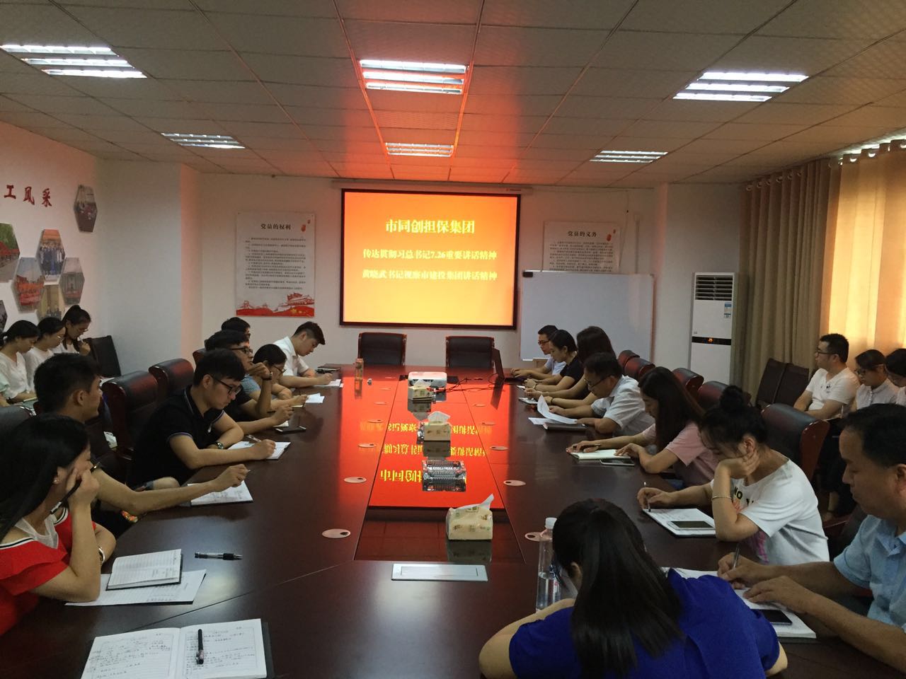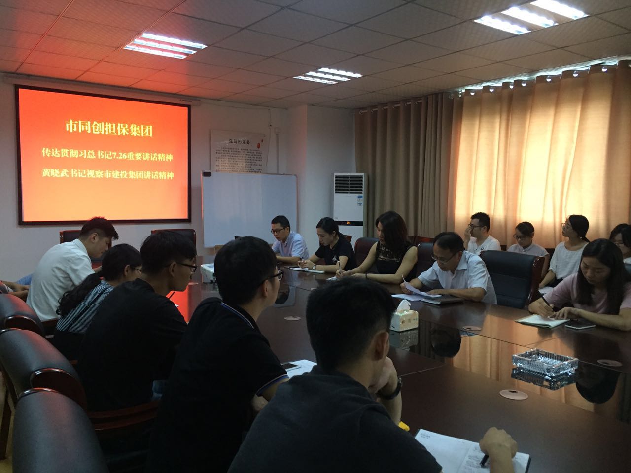 8月22日,市同創(chuàng)融資擔保集團組織全體員工學習貫徹習總書記7.26重要講話精神與市委書記黃曉武同志調(diào)研市建投集團講話精神。