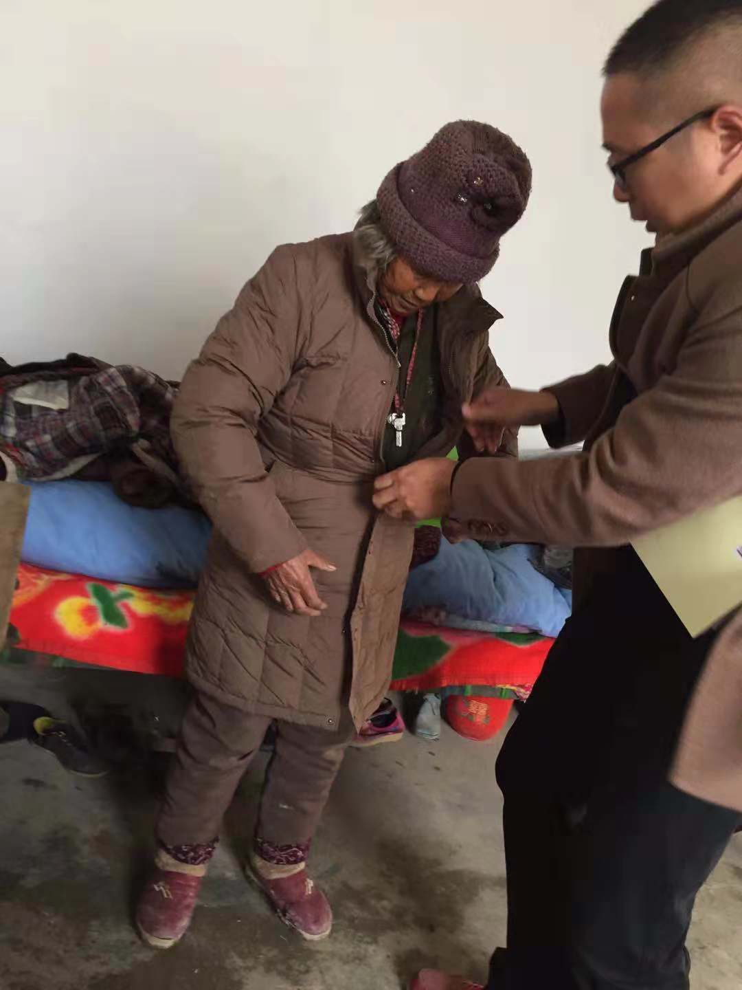初冬已過,寒冬將至。連續幾日的降雨,氣溫已漸降至冰點。2018年12月7日,保障房公司幫扶小組冒著嚴寒來到孫嚴玲老人家中,為老人送去了各自家中閑置的羽絨服、保暖內衣等保暖用品。“這個襖穿身上輕的很,還暖和,今年冬天不冷了”,孫嚴玲老人激動地說。